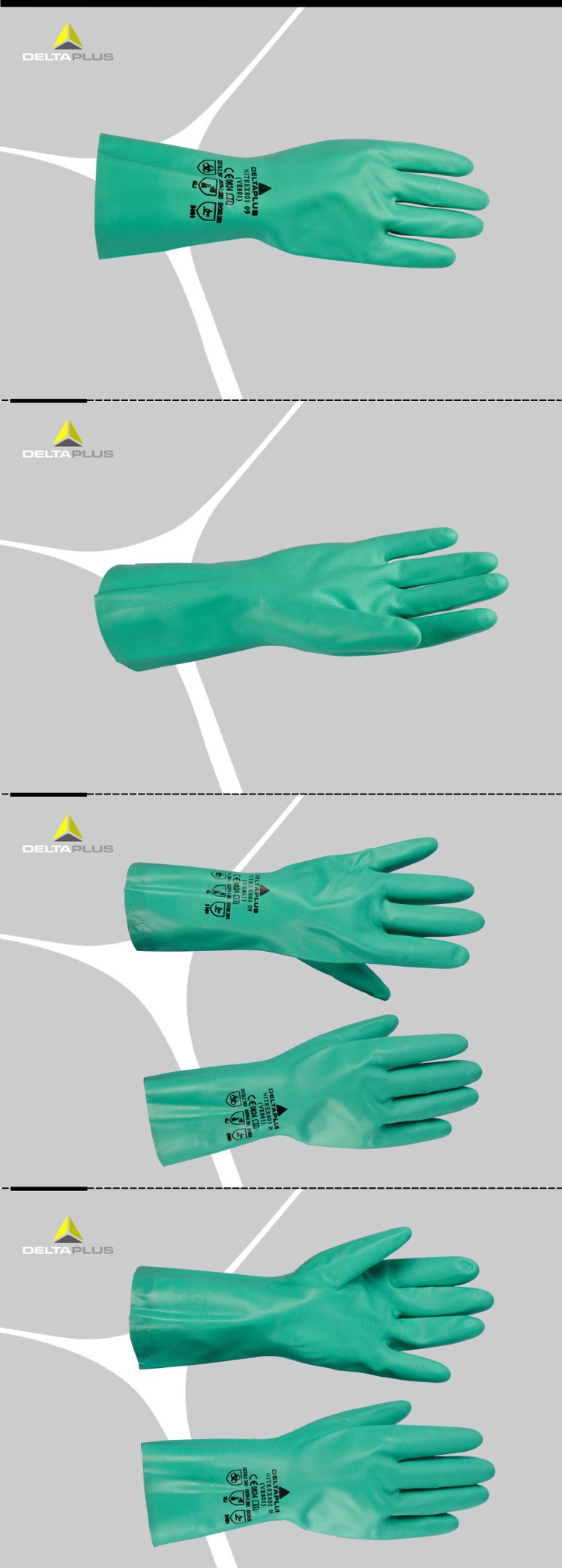 Tiêu Chuẩn: GĂNG TAY CHỐNG HÓA CHẤT DELTAPLUS VE801 đạt tiêu chuẩn EN374, EN420, EN388.