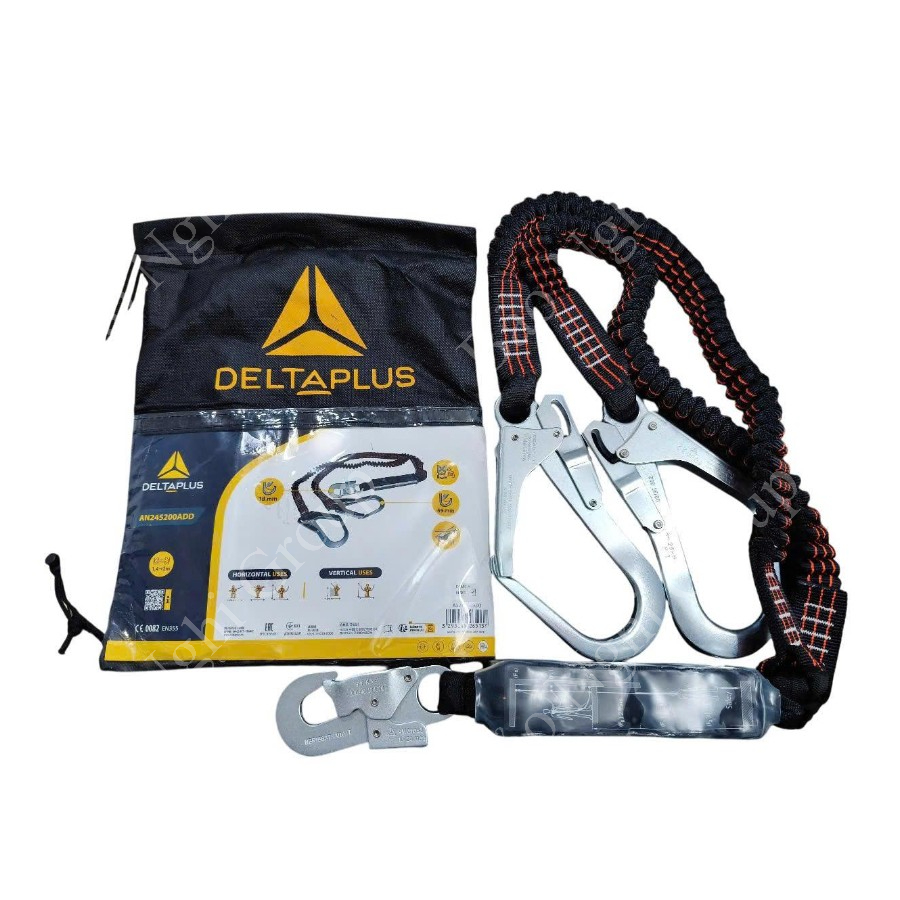 Dây đai chống sốc 2 móc thép AN245200ADD Deltaplus là sản phẩm chất lượng, an toàn cao, chống tĩnh điện và phù hợp với dây đai toàn thân. Để sử dụng an toàn, hãy kết hợp với full‑body phù hợp (HAR35M/HAR44EL).
