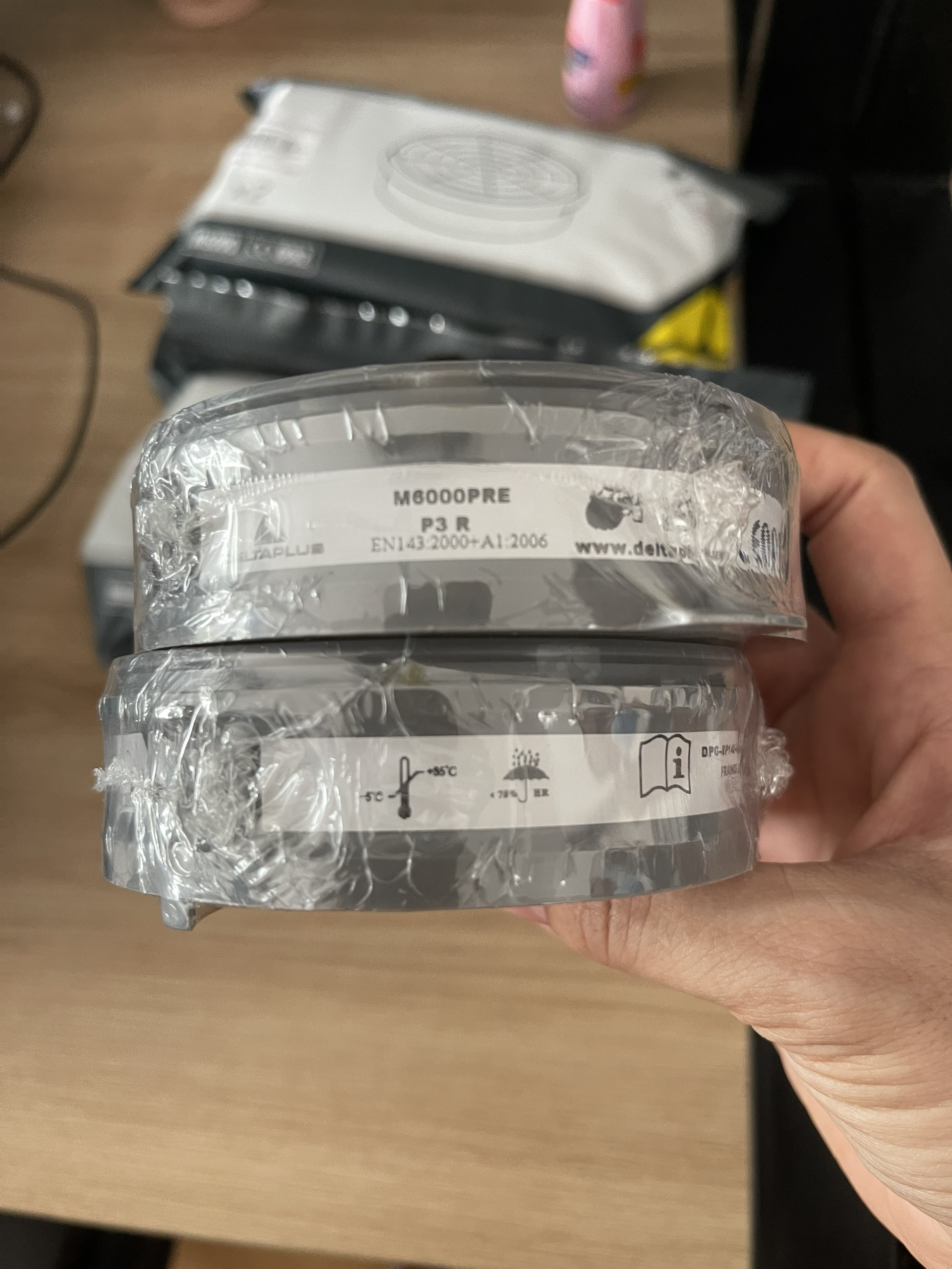 * Lưu ý: PHIN LỌC BỤI VÀ CÁC HẠT Ô NHIỄM DELTAPLUS M6000PREP3R không dùng trực tiếp vào mặt nạ 1 phin lọc hoặc 2 phin lọc phải sử dụng kết hợp với phin lọc Deltaplus M6000A1 hoặc M600A2 ...